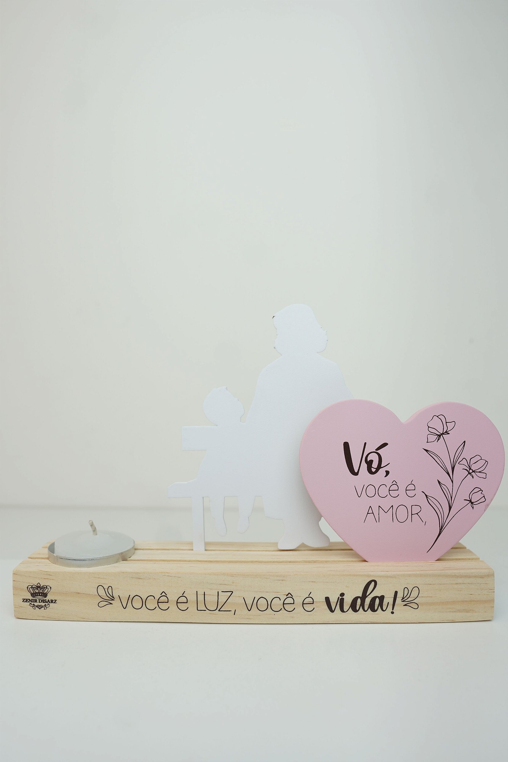 O Enfeite de Mesa “Vó, você é amor” é uma peça delicada em MDF, com vela e aplique, desenvolvida para expressar carinho e gratidão às avós. Com design encantador e mensagem afetiva, é ideal para decorar lares e transmitir amor em cada detalhe. Uma lembrança especial para presentear no Dia dos Avós, aniversários ou simplesmente demonstrar afeto em qualquer ocasião.