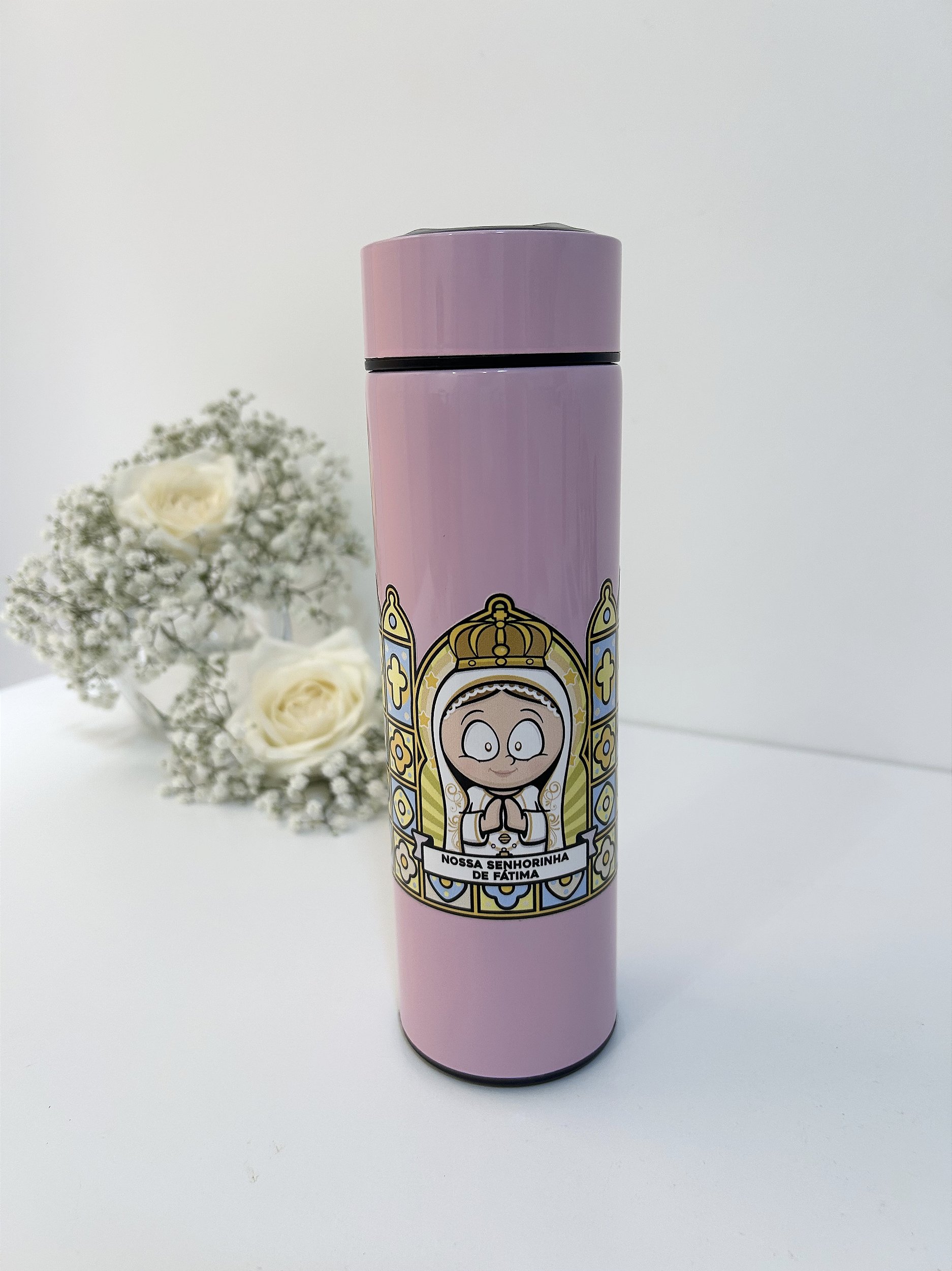 A Garrafa Térmica Nossa Senhorinha de Fátima é ideal para manter suas bebidas na temperatura certa por horas, seja quente ou fria. Com capacidade de 500ml, apresenta acabamento em aço inox com pintura rosa e estampa da Nossa Senhorinha de Fátima, perfeita para uso diário ou em aventuras ao ar livre. Seu diferencial técnico inclui tampa com visor digital que exibe a temperatura interna da bebida, garantindo praticidade e controle na hora de beber. Além disso, seu design compacto facilita o transporte em bolsas e mochilas, tornando-a um acessório versátil para camping, esportes e uso urbano.