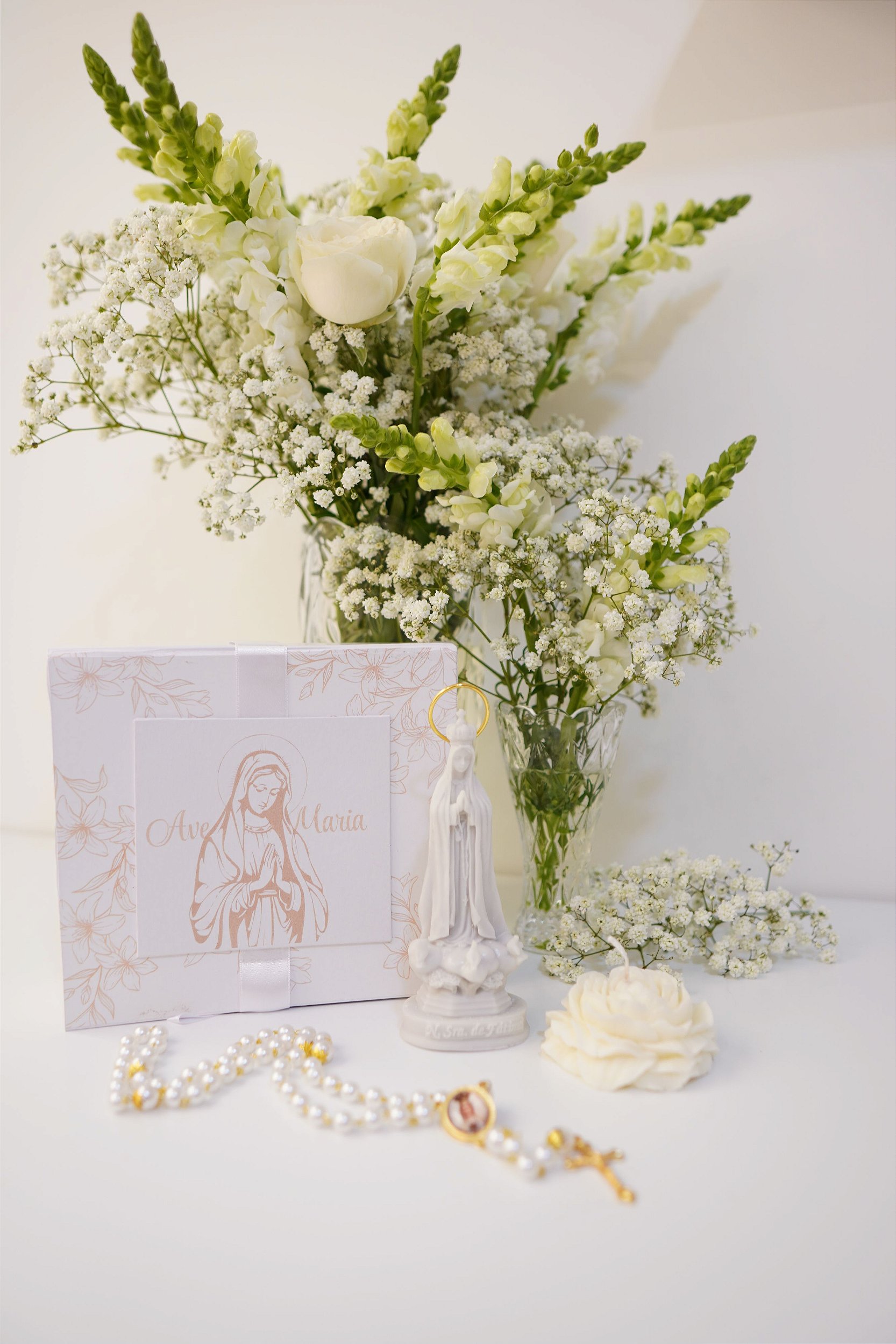 Expresse sua fé com elegância e significado com o Kit Ave Maria. Um conjunto especial, pensado para momentos de oração, proteção do lar e como presente religioso inesquecível.
