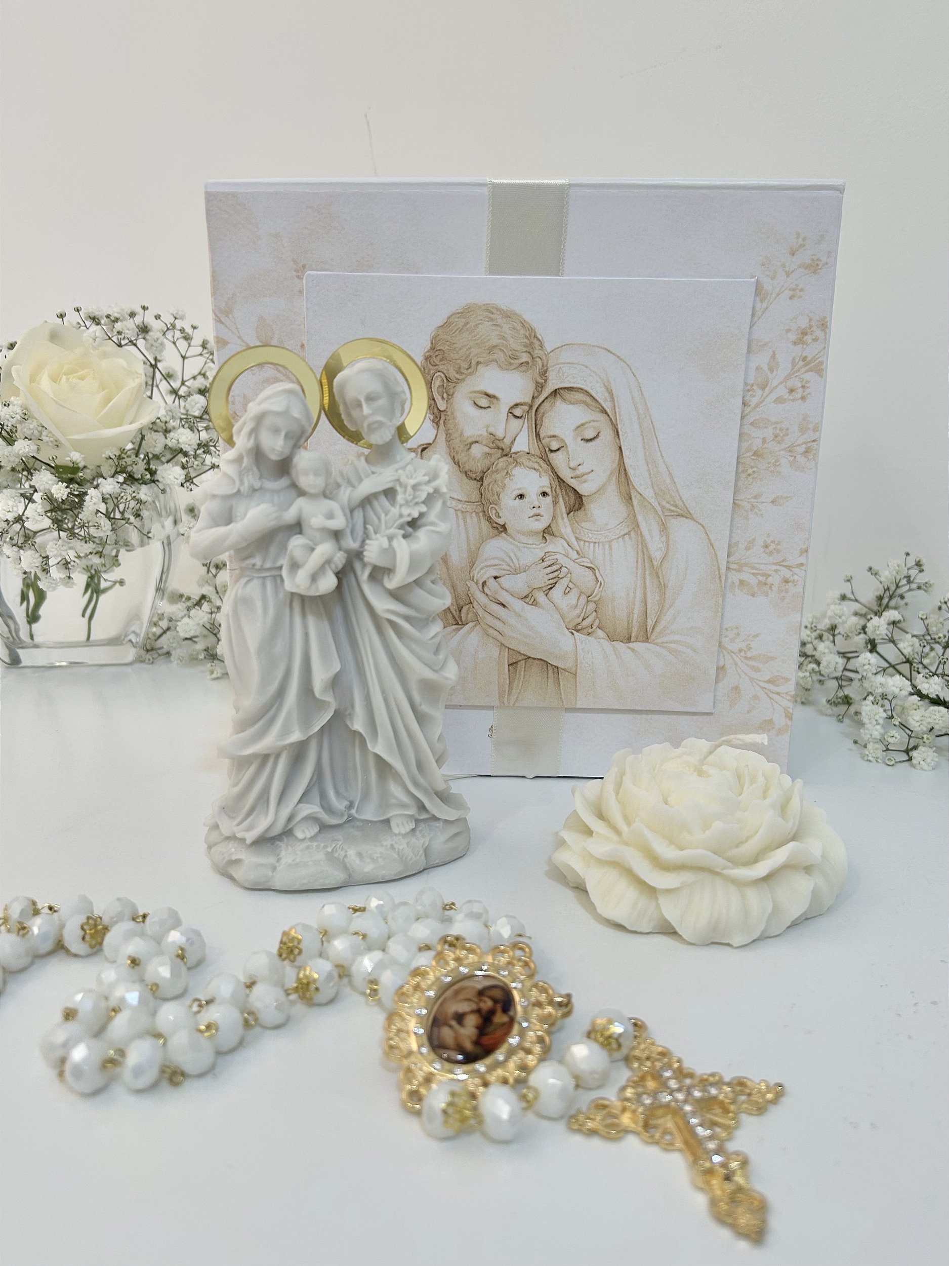 Expresse sua fé com elegância e significado com o Kit Sagrada Família. Um conjunto especial, pensado para momentos de oração, proteção do lar e como presente religioso inesquecível.