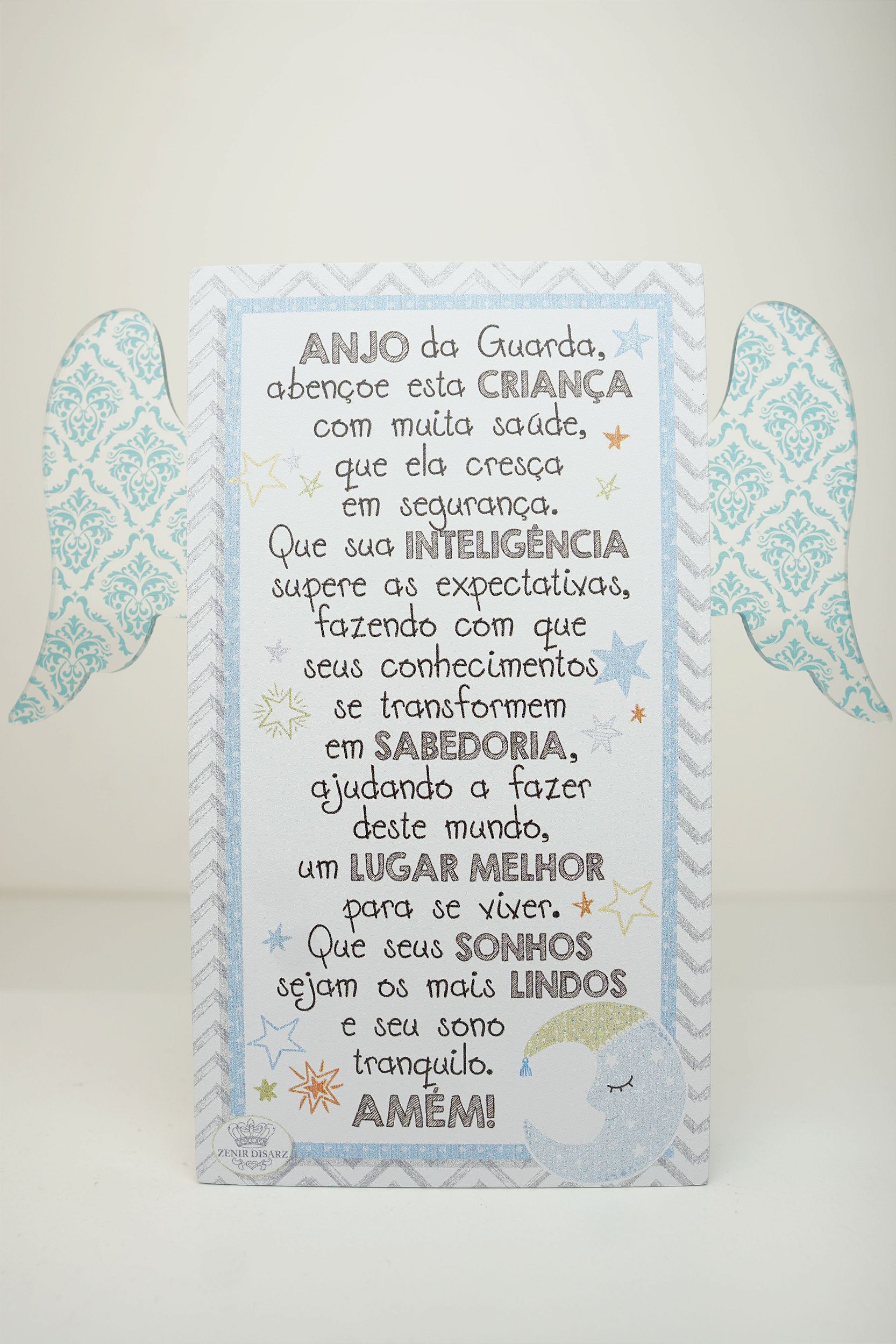 A Placa de Mesa Santo Anjo do Senhor – Azul é uma peça delicada em MDF com oração ao Anjo da Guarda. Com acabamento em tom suave de rosa, é ideal para decorar quartos infantis, oratórios ou oferecer como presente em batizados, maternidade e primeiras comunhões. Uma lembrança religiosa que transmite proteção, fé e ternura.