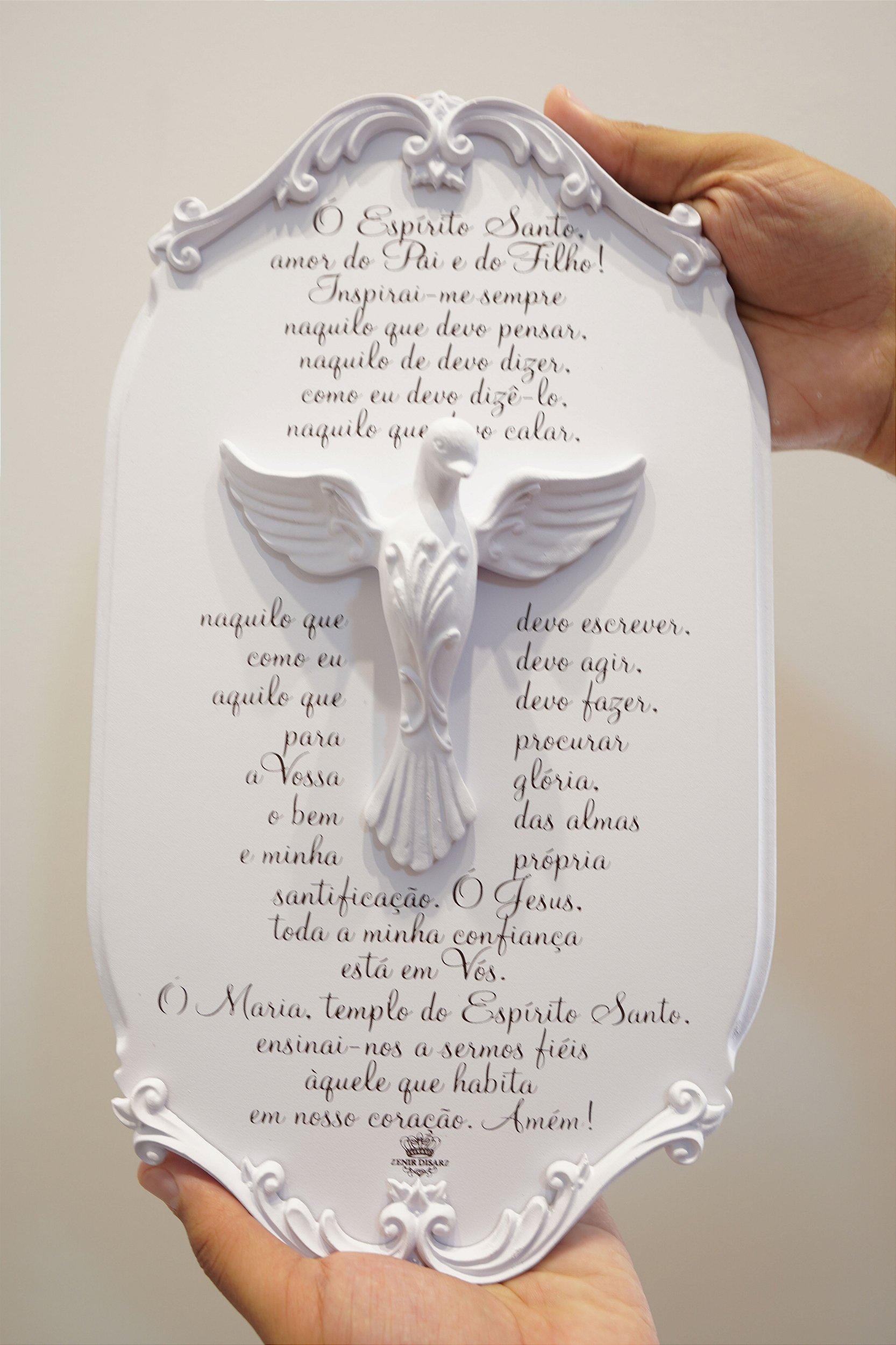 O Provençal Espírito Santo é uma peça devocional delicada, ideal para transmitir proteção e fé. Produzido em MDF com acabamento provençal, traz auma oração ao Espírito Santo, perfeita para compor a decoração de oratórios e ambientes religiosos. Também é uma opção de presente especial para crisma, batismo.