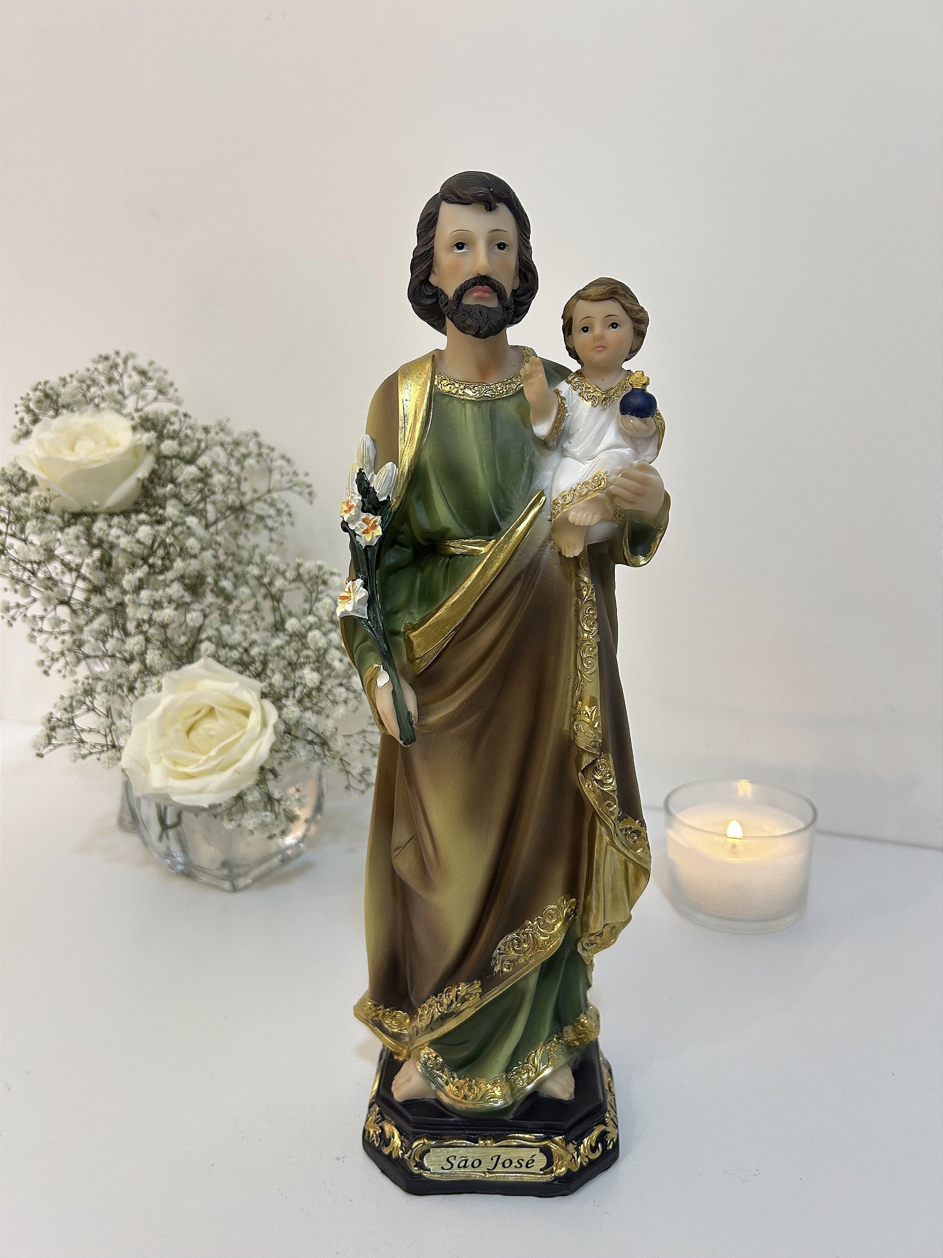 Imagem de São José, 30 cm, com grande delicadeza e riqueza de detalhes.