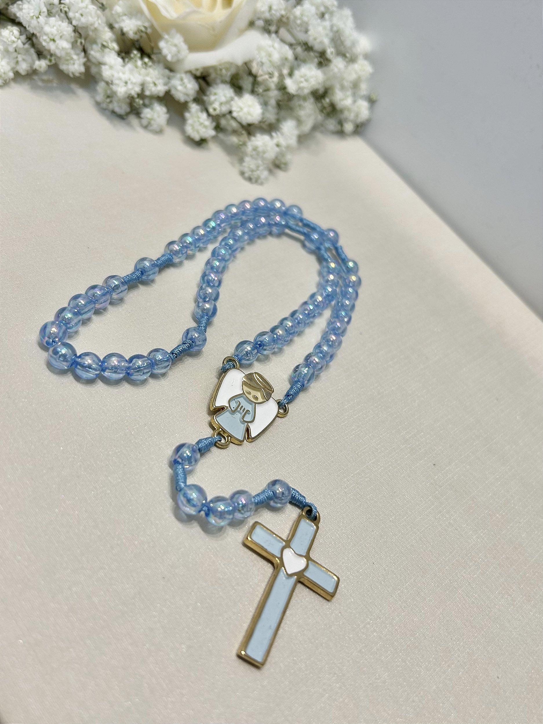 Prático e leve, o Terço Infantil Acrílico Azul é ideal para as crianças aprenderem a rezar com conforto e segurança.