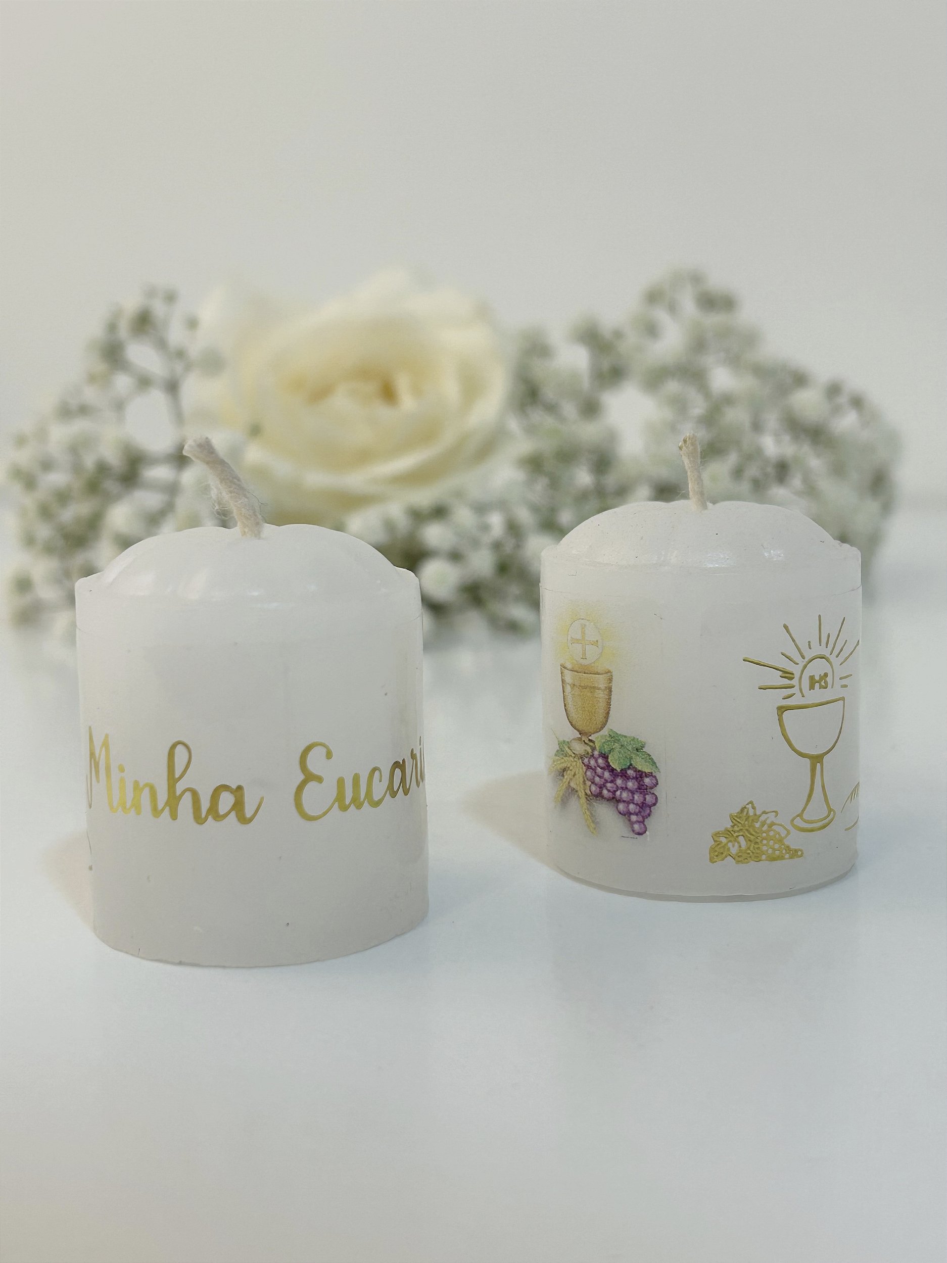 Vela personalizada ideal para comemorar a Primeira Eucaristia com significado e beleza